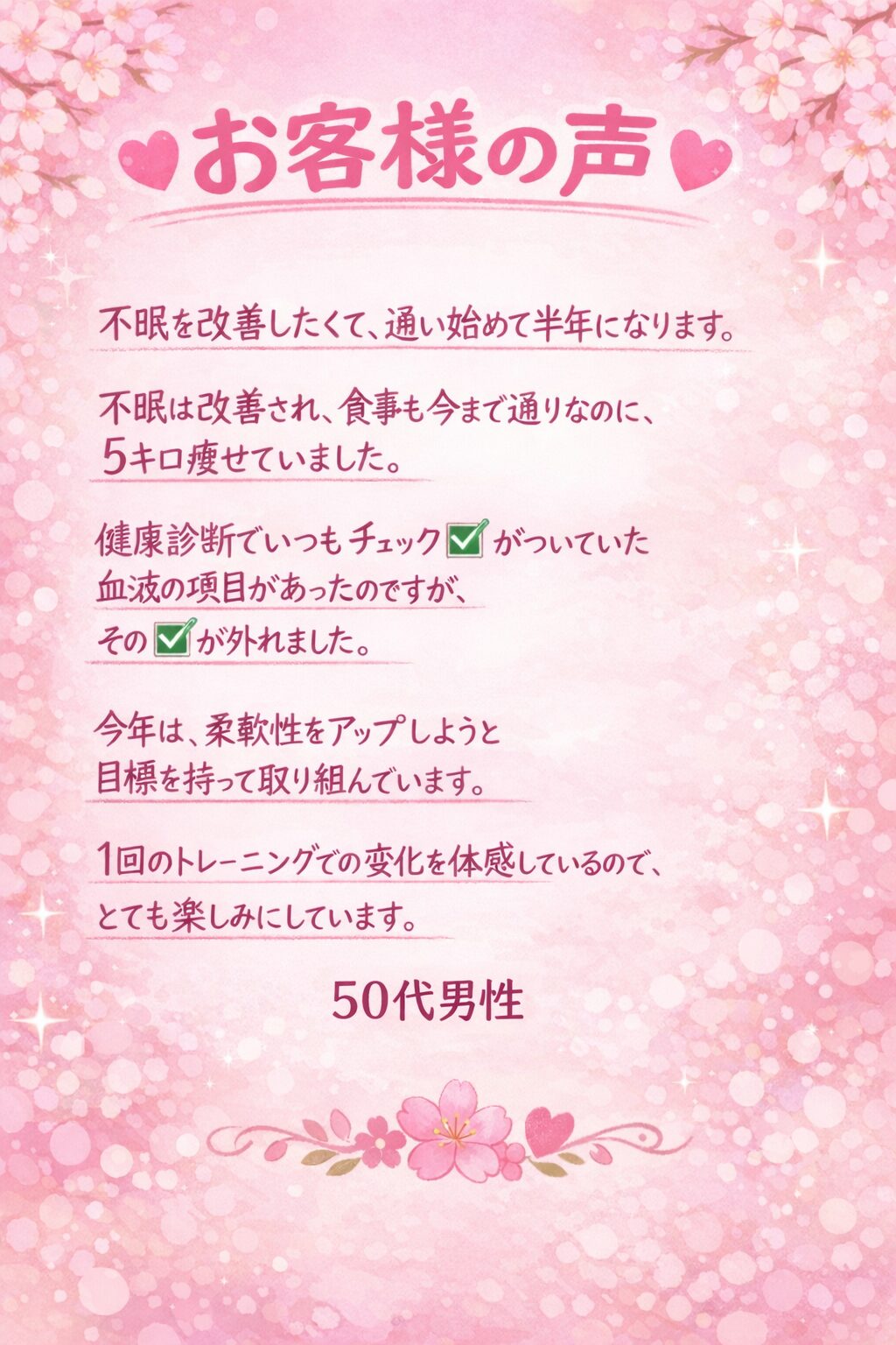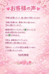 不眠を改善したくてトレーニングを始めた Kさんは50代男性です。