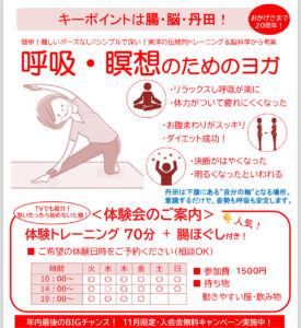 年内最後のBIGチャンス!11月限定・入会金無料キャンペーン!! 人気の腸ほぐしプレゼント🎁付「呼吸・瞑想のためのヨガ」