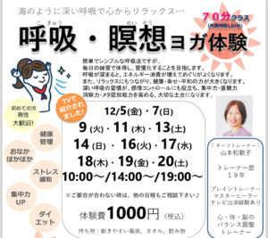 自分のためだけの時間、自分を癒す時間、見つめる時間を自分にプレゼントしてみませんか?日々を忙しく過ごしていると自分のことを忘れがちです。体が温かくなって呼吸が楽になると、自然に心も穏やかになって、自分を楽に眺められる余裕が出てきます。健康な精神は健康な肉体から。楽な心でいらしてください♪